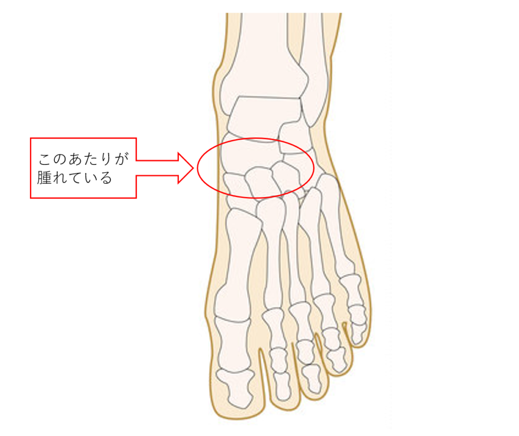 2ヵ月くらい前から左足の甲に痛みがあった。1ヵ月前に整形外科を受診するもレントゲンで異常は見つからず足首の硬さが原因と説明された。整形外科で指導されたストレッチを自宅で実施したが改善がみられないため当院に来院。